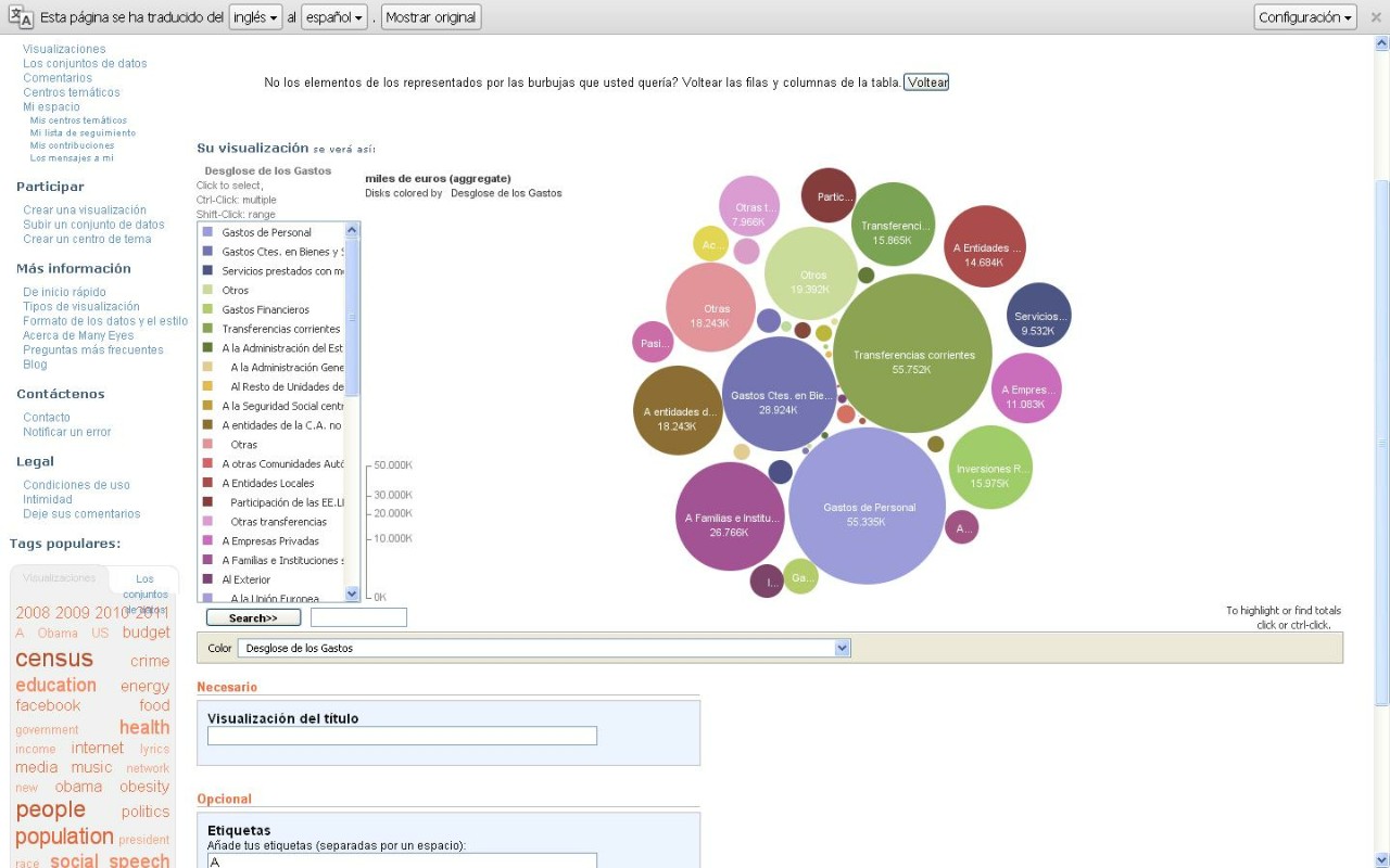 En este gráfico de burbujas se ha empleado colores para diferenciar los diferentes elementos, Además la presentación jerárquica de las diferentes burbújas facilita la interpretación con un golpe de vista.